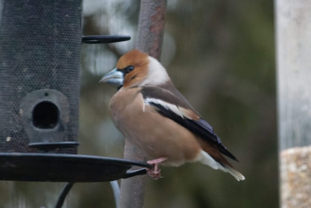 Strong south-easterly winds featured throughout a day that began with sunny intervals, but ended overcast with light rain; temperatures reached nine degrees C. Following the early White Wagtail on 9/3, the day’s highlight was further evidence that spring passage was well underway – a Hawfinch visited feeders in a village garden late afternoon.