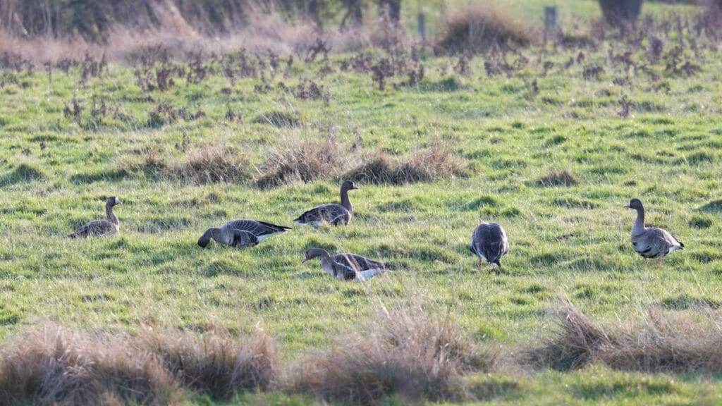 A flock of eight Russian White-fronted Geese at Michlemires were new arrivals while 31 Pink-feet toured the Outer Head. Two Woodcocks and a Short-eared Owl remained at Bempton Cliffs as 80 Pink-footed Geese passed overhead. Nearby, along the cliff top at Buckton there were 24 Snow Buntings, a Russian White-fronted Goose flew north-west with Pink-feet which totalled 165 in three flocks. Corn Bunting numbers remained high with 160 noted together with 21 Rock Pipits, 120 Skylarks and 25 Yellowhammers. Six Redwings and 28 Fieldfares were also present.