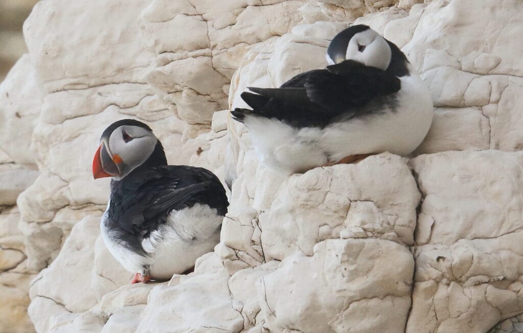 Sunny throughout, with a light variable winds and temperatures reaching 14 degrees C. The year’s first Sandwich Terns were recorded during the morning’s seawatch, with three birds flying south. However, the main feature of the day were two distinct movements of Redwing: unusually, a total of 395 Redwing made landfall from the east early morning and headed west over the headland. Towards dusk, a mirror image movement took place, with 480 Redwing flying high from South Dykes and heading east out to sea. Additional migrant records included two Little Ringed Plovers, four Woodcock, a Jack Snipe, the long-staying Siberian Chiffchaff, 20 Chiffchaffs, one Black Redstart, a Wheatear, a White Wagtail and four Siskin.