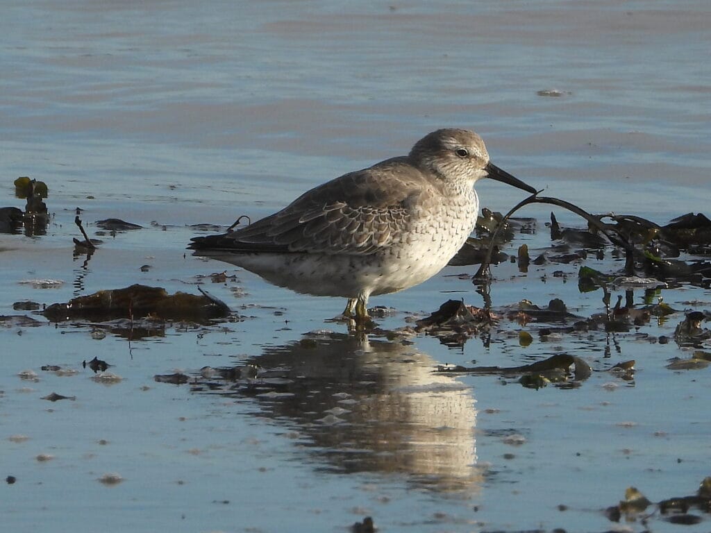 Strong south-west winds throughout, overcast skies and temperatures peaking at 17 degrees C. It was a relatively quiet seawatch with four Goosanders, two Little Gulls and a Puffin flying south. Two Whooper Swans and a vocal Bean Goose sp. flew south over the outer head late morning, whilst the cliff top fields near North Marsh again proved attractive, with 12 Twite, a Lapland Bunting and four Snow Buntings present; two Jays were also present on the outer head.