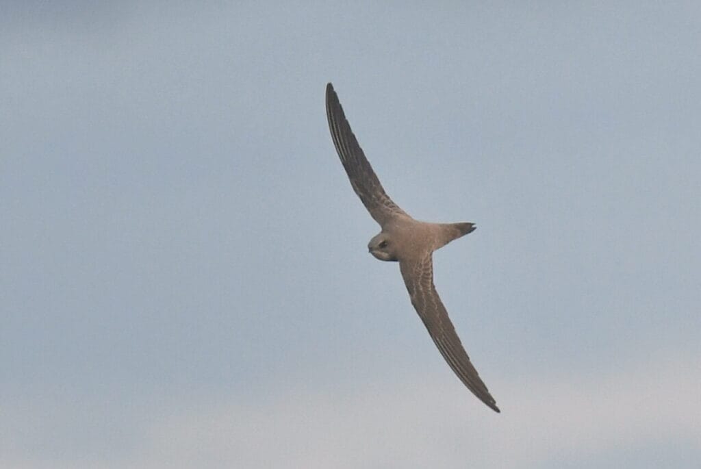 After relatively benign conditions, strengthening south-westerly winds were always likely to push aerial feeders onto the headland. Consequently, it seemed almost inevitable when an Alpine Swift was located on the outer head late afternoon; it eventually gave spectacularly close views on the southern edge of the Lighthouse car park/Gorse Field.